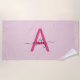 Serviette De Plage Rose vif Moderne Écriture Féminine Monogramme Nom