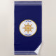 Roue nautique moderne chic doré sur bleu marine avec rayures blanches plage Serviette.