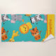 Jolie serviette de plage, cette conception comprend de mignons lions, des girafes, des tigres, des éléphants et des zèbres. Véritable aventure safari, customisez votre nom en bas. Idéal pour un enfant, commandez votre serviette de plage dès aujourd'hui ! Oeuvre créée par : Conception de Prettygrafik (https://www.etsy.com/shop/Prettygrafikdesign)