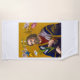 Père de Jésus-Christ et mari de Marie Notre-Dame était charpentier qui, dans la Bible, éleva un fils saint généré par l'esprit saint. Photo byzantine de ce saint catholique chrétien. Il a une branche de lys comme emblème et est entouré d'anges. Il forme la famille sainte Jésus Maria e José. Illustration idéale pour décorer événements et objets religieux.