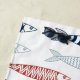 Un design moderne décoratif rouge, bleu et blanc avec des sardines de poisson. Illustration design d'inspiration méditerranéenne parfaite pour l'été. Le décor parfait de fête d'été ou de maison de plage pour votre maison de plage. Idéal pour tous les amateurs de poissons, sardines, océaniques et nautiques illustrant les motifs balnéaires et estivaux.