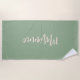 Serviette De Plage Script de nom personnalisé de la pêche verte Sage