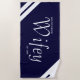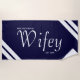 Serviette De Plage Script Wifey moderne Marine et rayures blanches