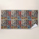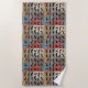 Cette serviette de plage présente des silhouettes d'avion noir, contre un arrière - plan abstrait multicolore. Les avions sont un montage d'hélicoptères vintages, modernes, civils et militaires.