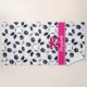 Cette serviette de plage personnalisée pour footballeur féminin comporte un motif de petites boules de football en noir et blanc disposées en miroir motif - son nom et son numéro de maillot sont personnalisables - les couleurs des bandes de texte et de nom peuvent être personnalisées - par katz_d_zynes