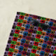 Dans un motif coloré, on voit des balles de football dans un décor pop art