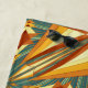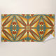 Beach Towel with Golden Indian Summer Sunset with artwork design image by TheFabricSeal at Zazzle est un magnifique art motif récurrent créatif abstrait représentant de magnifiques rayons de soleil de deuxième été avec le désert du sud-ouest animé et l'art indien américain et des couleurs avec bleu turquoise et vert, jaune, orange, rouge, marron et la palette de couleurs crème.