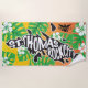 St. Thomas "Rock City" Sac fourre-tout tropical Couleurs tropicales et festives. Des fleurs tropicales et des feuilles entourent la forme de St. Thomas, îles Vierges américaines. St. Thomas fait partie des îles Vierges américaines situées dans les Caraïbes.