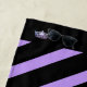 Cette serviette de plage est montrée dans un arrière - plan noir avec des rayures couleur Lilac en gras et avec l'impression d'une couronne de Lilac brillante. Customisez cet objet.