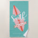 Serviette De Plage Surf Sable & Vagues Retro Rose & Turquoise Surboar