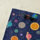 Un système solaire moderne et amusant motif avec des planètes colorées, des étoiles et des illustrations solaires contre un arrière - plan bleu foncé.