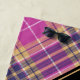 Design rose, jaune doré et écossais bleu. Motif sans couture. Texte et monogramme personnalisés.
