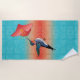 Serviette De Plage Tatouage Colibri Rouge hibiscus Fleur Turquoise
