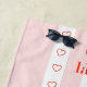 Le cadre parfait pour votre selfie de bronzage, ces serviettes de plage design amusant vous obtiendront des goûts maximum. Chic et amusant serviette de plage à thème français avec rayures roses ballet, coeurs rouges et slogan enjoué.