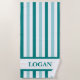 Serviette de plage turquoise en bande avec nom per