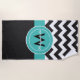 serviette de plage en chevron turquoise noir
