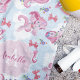 Rendez-vous à la plage avec cette serviette de plage magique monogrammée avec des licornes roses et du Pegasus flottant sur les nuages sur un arrière - plan bleu doux. Cadre blanc avec arrière - plan rose doux et le nom et l'initiale de votre enfant pour une touche personnelle. Cherchez les produits correspondants dans mon magasin.