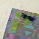 Formes géométriques colorées motif, oeuvre d'art sur mesure dans des tons proéminents de vert, bleu, violet, rose et avec des nuances supplémentaires d'argent, gris, or. Elégant design art numérique tendance.