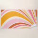 Vibes rétro colorées illustration abstraite avec rayons ondulés rose, violet, marron, beige, jaune et orange sur arrière - plan pastel