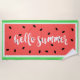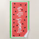 Ce design amusant de serviettes de plage présente des couleurs de pastèque typiques à la frontière et arrière - plan parsemé librement de graines noires. La calligraphie élégante de 'bonjour été' est fournie et peut être supprimée si elle est préférée. Cherchez ID407 pour voir d'autres produits avec cette conception.