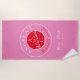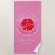 Contemporain, moderne, vibrant serviette de plage de week-end Bachelorette rouge et magenta rose avec monogramme - initiales, nom, lieu, date, dessin unique de couple d'amour romantique d'oiseaux et calligraphie manuscrite tendance.