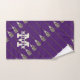 Serviette de joueur de lacrosse avec un motif de bâton de lacrosse sur un fond violet. Pour personnaliser, modifiez le texte pour ajouter le nom du joueur de lacrosse et le monogramme.