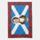 Cette serviette de thé écossaise patriotique comporte une peinture du poète national Robert Burns de l'Ecosse par son ami Alexandre Nasmyth d'artiste. J'ai placé le portrait ovale sur le drapeau écossais. La frontière de tartan est le Stuart royal célèbre, ou Stewart, plaid de tartan. Le cadeau parfait pour des célébrations d'un dîner de brûlures ou de nouvelle année.