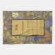 Feuille onduleux, art par Kristie Hubler, avec le calendrier 2015 sur une serviette de thé de cuisine. Ce feuille est pour des framboises. En verts, les or de chameau, loden, et les bigorneaux foncés. La générosité de la nature. Une promenade par les bois. Bruir le feuille.