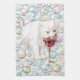 Cette serviette de thé d'amusement pour des propriétaires de chat et des amateurs de vin rouges comporte une illustration vintage d'un chaton blanc adorable buvant d'un grand verre de vin rouge. L'arrière - plan est un motif des bulles savonneuses colorées. Le lavage des plats et des verres est toujours une corvée, mais cette serviette de thé mignonne pourrait la faire moins d'un trou.