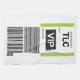 Conçue comme une étiquette de bagage de compagnie aérienne internationale avec un motif de statut VIP, ainsi que votre choix de code aéroport de destination à trois lettres, de numéro de vol et de nom de passager.