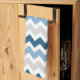 Serviette de cuisine foncée moderne et élégante de motif rétros de chevron de zigzags de rayures de bleu marine, grises et blanches, personnalisables vintages avec votre propre texte ou photo, une addition unique et élégante à votre décor de cuisine.