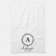 Serviette de vaisselle personnalisée avec monogramme et nom de famille, idéal pour les cadeaux de pendaison de crémaillère, pour votre cuisine. Avec couronne en noir et blanc.