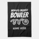 Serviette drôle de boule de bowling pour le lanceur d'Okayest des mondes. Accessoire personnalisé pour lui. Idée d'anniversaire ou de cadeau d'amusement pour des professionnels et des enthousiastes. Serviette de main avec la couleur et le texte personnalisables d'arrière - plan. Obtenez un pour le papa, l'oncle, le grand-papa, le mari, l'équipier, le fan, l'ami, le patron, le collègue, l'épouse, le frère, la maman etc.