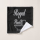 Serviette de linge Royal Flush par TheFabricSeal à Zazzle.com https://www.zazzle.com/store/thefabricseal humour de toilette ou salle de bain amusant. Les illustrations de lettres et de toilettes sont dessinées en blanc sur une couleur noire arrière - plan. Un Royal Flush est un Flush droit ayant un as comme la carte la plus élevée. Une autre version d'un Royal Flush est d'avoir à vider tous vos gains.