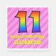 Ce design amusant et festif de 11ème anniversaire de papier à thème de la serviette comporte un grand nombre "11" ayant un motif coloré inspiré par l'apparence d'un spectre arc-en-ciel. Il comporte également le message "Joyeux 11e anniversaire", suivi d'un nom personnalisable. L'arrière - plan est doté d'un motif à rayures rose foncé et rose clair, aux coeurs roses aimés. Des serviettes en papier sur le thème de l’anniversaire amusantes et modifiables comme celle-ci pourraient être utilisées à la fête du 11e anniversaire de quelqu’un. [~Z0000417]
