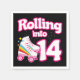 Ce design de fête de patinage est parfait pour une fête de patinage à rouleaux ou un thème d'anniversaire pour une fille de 14 ans. Si la fille d'anniversaire aime le roller skate, elle ADORE ce skate party design! Caractéristiques style rétro 'Rolling in 14' anniversaire citation avec roller cool graphique avec arc-en-ciel & étoiles qui est amusant et unique. Fun roller skate design pour le 14ème anniversaire d'une fille!