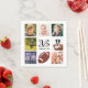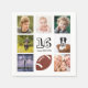 Une serviette pour une fête du 16ème anniversaire pour un garçon, célébrant sa vie avec un collage de 8 de vos photos. Modèles pour l'âge de 16 ans et une date. Date de naissance ou date de la fête. Lettres de couleur noire. Fond blanc.