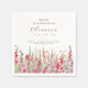 Décor de table parfait pour un anniversaire d'août. Le gladiolus rose est la fleur de naissance pour ce mois-là. Il forme une jolie bordure de fond d'aquarelle sur cette serviette florale personnalisée. Le nom, l'âge et la date de naissance de l'invité d'honneur sont placés au-dessus de celui-ci à l'aide d'élégantes calligraphies et typographies. Tout le texte est modifiable.
