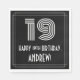 Ce design de serviette d'anniversaire inspiré du style des années 1920/1930 est doté d'un grand look Art Déco inspiré du numéro "19", du message "HAPPY 19th BIRTHDAY", un nom personnalisé, et d'un motif de frontière composé de lignes. Des serviettes en papier sur le thème de l’anniversaire comme celle-ci pourraient être amusantes à utiliser lors d’une fête organisée pour célébrer le 19e anniversaire de quelqu’un. [~Z0000395]