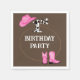 Avec "Anniversaire fêté" ou l'option d'ajouter du texte personnalisé, ces serviettes continuent le thème du rodéo, marron, rose et vache à partir des invitations de premier anniversaire/saddle up.