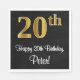 Ce design élégant, élégant et sophistiqué de serviette en papier à thème d'anniversaire comprend un grand numéro ordinal "20e" ayant une apparence fausse/imitation or, en plus du message de voeux d'anniversaire "Joyeux 20e anniversaire", et un nom modifiable dans une police de style script. L'arrière - plan est noir de couleur. Des serviettes en papier sur le thème de l’anniversaire comme celle-ci pourraient être utilisées lors d’une fête d’anniversaire célébrant le 20e anniversaire de quelqu’un. [~Z0000516]