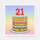 Cette serviette en papier sur le thème de l'anniversaire, joyeuse et joyeuse, présente une représentation en bande dessinée d'un gâteau d'anniversaire à trois étages avec des bougies en forme de chiffre sur le dessus montrant l'âge de "21 ans", ainsi que le message "HAPPY 21ST BIRTHDAY," et un nom de destinataire personnalisé. L'arrière - plan dispose d'un motif multicolore pastel en arc-en-ciel inspiré du spectre dégradé. Des serviettes colorées sur le thème de l’anniversaire, comme celles-ci, pourraient être utilisées lors d’une fête pour célébrer le 21e anniversaire de quelqu’un. [~Z0000623]