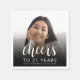 Cette serviette de 21e anniversaire personnalisée présente l'invité de l'honneur photo, nom, et anniversaire, ainsi que le mot "Cheers" dans élégant script de calligraphie blanche. Un écran sombre permet de faire apparaître le texte. Un excellent moyen de célébrer quelqu'un qui a 21 ans !