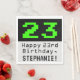 Cette conception amusante et geek anniversaire papier à thème de conception de serviette comporte un grand vert rétro de l'ordinateur style de jeu numéro "23" sur un arrière - plan de couleur noire. Il contient également le message de voeux d'anniversaire "Joyeux 23e anniversaire", ainsi qu'un nom qui peut être modifié. Des serviettes en papier comme celles-ci peuvent être utilisées lors d'une fête organisée pour célébrer le 23e anniversaire d'un ingénieur, d'un administrateur de système informatique ou d'une personne qui apprécie les jeux vidéo classiques. [~Z0000404]