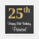 Cette conception sophistiquée, élégante et élégante de serviette en papier d'anniversaire comporte un grand numéro ordinal "25ème" avec une imitation/faux look d'inspiration or, ainsi que le message de voeux d'anniversaire "Happy 25ème anniversaire", et un nom personnalisable dans une police de style script. Il dispose également d'une arrière - plan de couleur noire. Des serviettes en papier comme celle-ci peuvent être utilisées pour célébrer le vingt-cinquième anniversaire de quelqu’un. [~Z0000516]