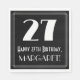 Ce look vintage et Roaring Twenties inspiré design de papier d'anniversaire avec un grand style art déco inspiré numéro "27", le message "Happy 27th Birthday," un nom personnalisé, et un motif de bordure composé de lignes fines. Des serviettes en papier sur le thème de l’anniversaire amusantes et modifiables comme celle-ci pourraient être utilisées lors de la célébration du 27e anniversaire de quelqu’un. [~Z0000461]