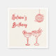 Comme vous voyez cette serviette d'anniversaire unique et élégante a un modèle bien conçu. Avec des martinis rouges dessinés à la main et des verres à cocktails et une boule disco avec un nom manuscrit fantaisiste. Tout sur arrière - plan crème. Vous pouvez facilement customiser en cliquant sur le bouton de personnalisation.