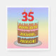 Cette serviette en papier d'anniversaire amusante et colorée présente une représentation de style dessin animé d'un gâteau d'anniversaire à trois niveaux avec des bougies en forme de chiffre sur le dessus montrant l'âge "35", avec le message "HAPPY 35TH BIRTHDAY", et un nom de destinataire personnalisé. L'arrière - plan a un motif multicolore pastel arc-en-ciel inspiré du spectre dégradé. Des serviettes en papier comme celles-ci peuvent être utilisées pour célébrer le 35e anniversaire de quelqu’un. [~Z0000623]