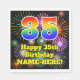 Cette serviette en papier joyeuse et joyeuse sur le thème de l'anniversaire comporte un grand nombre de "35" avec un dégradé coloré du spectre arc-en-ciel inspiré motif, avec le message "Happy 35th Birthday," et un nom personnalisé. L'arrière - plan présente un motif multicolore inspiré par l'allure de feux d'artifice festifs éclatants. Des serviettes en papier comme celle-ci pourraient être utilisées lors d’une fête organisée pour célébrer le trente-cinquième anniversaire de quelqu’un. [~Z0000574]
