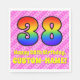 Ce modèle de serviette en papier à thème de 38e anniversaire heureux et optimisé comprend un grand nombre de "38" ayant un motif coloré à l'arc-en-ciel inspiré du spectre dégradé. Il comporte également le message "Joyeux 38e anniversaire", et un nom personnalisable. L'arrière - plan est décoré d'un joyeux motif de rayures rose foncé et rose clair, aux coeurs roses aimés. Des serviettes en papier sur le thème de l'anniversaire comme celle-ci pourraient être amusantes à utiliser lors d'une célébration organisée pour honorer quelqu'un qui célèbre son trente-huitième anniversaire. [~Z0000417]